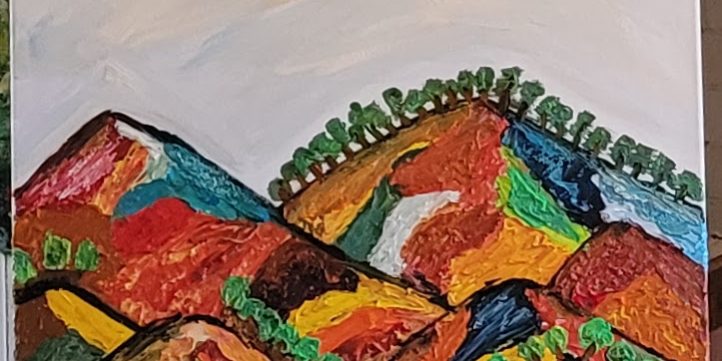My painting was about finding beauty and life in cleared farming spaces, by seeing the beauty in shelterbelts, paddock trees and water bodies.