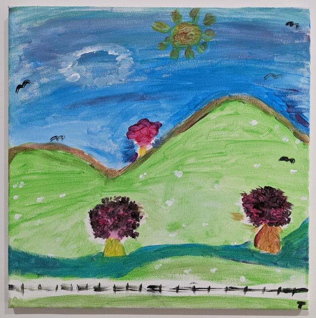 “Dream Home” This painting depicts the view we have over my family farm from the house. This farm in years to come will be handed down to me. In this painting, I wanted to capture how I feel about the farm and how I want to see it in the future. I want to walk…