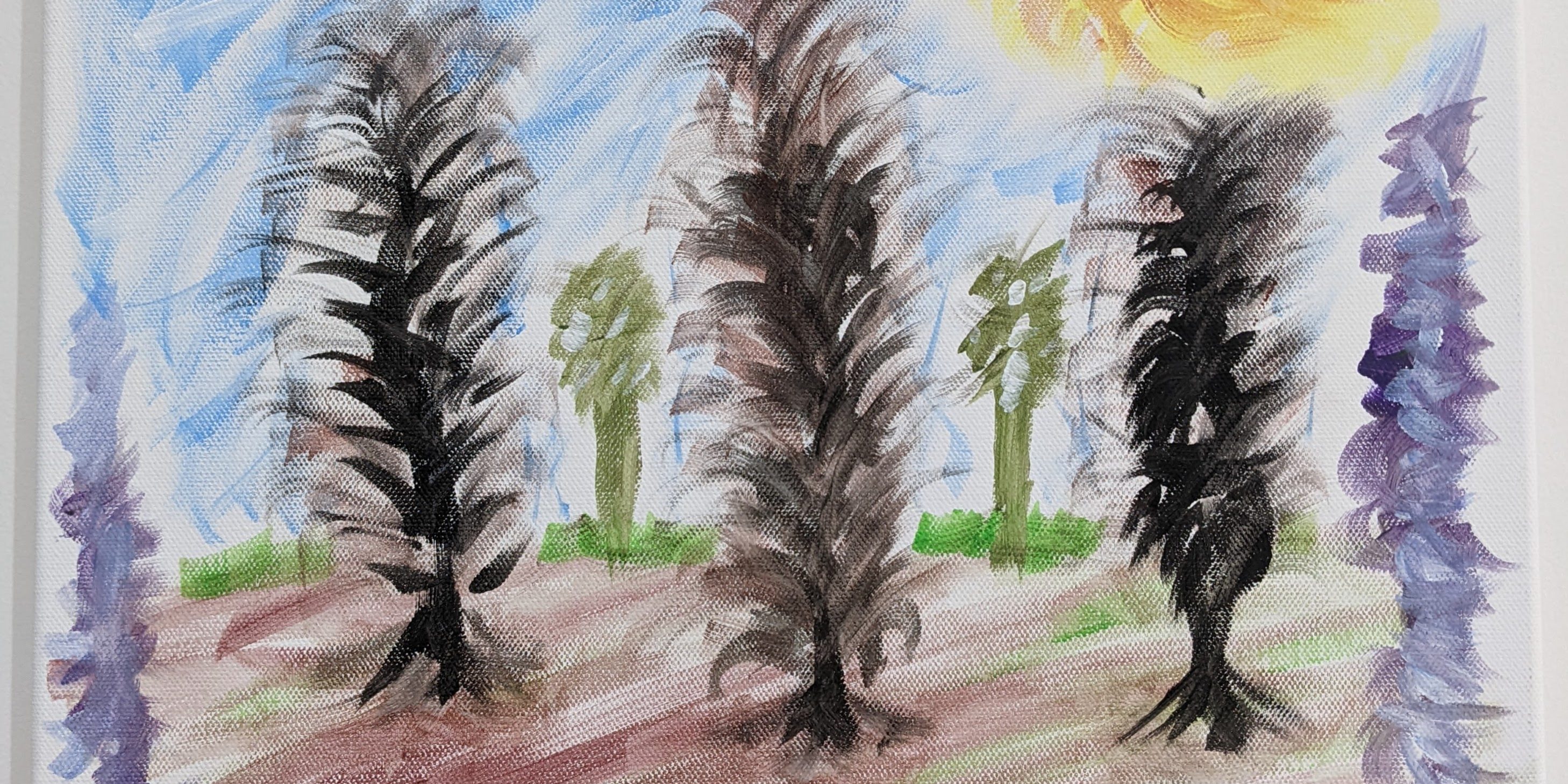 Regeneration of the tree ferns on Clyde Mountain after destruction from the fires, amongst the dead trees were damaged trees that were starting to regenerate.